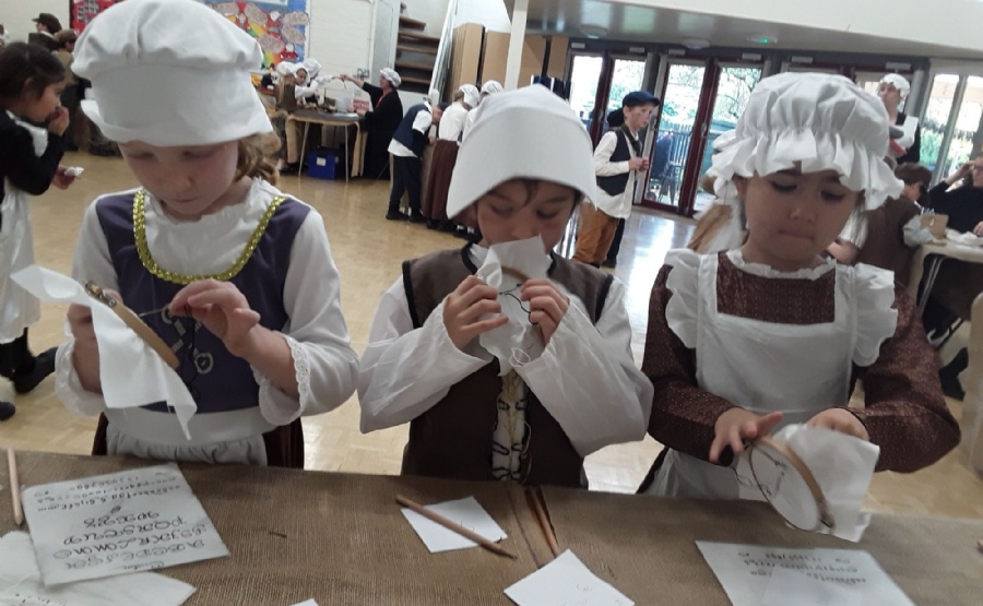 'History off the Page' came into school and set up the hall with an array of trades which would have been seen in 17th Century London and the children got to try their hands at being chandlers, seamstresses, apothecaries and leather workers amongst others.