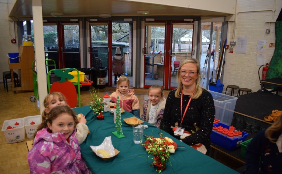 During lunchtime today, the lucky Year 1 winner of the PFA Silent Auction from Butterfly class was able to dine with Mrs Browning. Mrs Browning talked to Gigi and her friends about holidays, their ballet exams and what they would all like for Christmas.