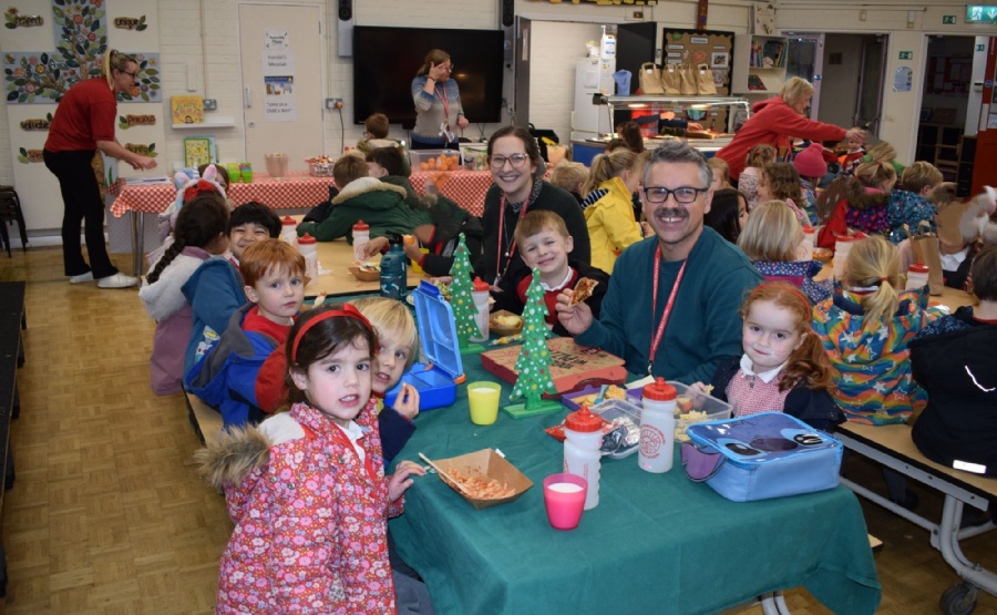During lunchtime yesterday, the two lucky Reception winners from the PFA Silent Auction were able to dine with Mr Creese and Mrs Madziwa. They invited 2 friends each, sat with their teacher and chatted about lots of things. Mr Creese talked to Taylor and her friends about their plans for Christmas, while Mrs Madziwa talked to Bowie and his friends about their favourite foods and Christmas.