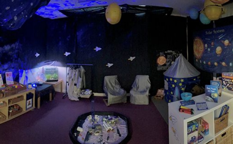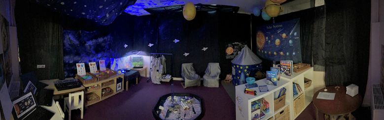 The Reception Children have a newly updated role-playing area which they have been working on this week. To support their Space topic learning, the role-play area has been decorated with planets, space rockets and starry skies! There are, of course, dressing-up costumes as well, which are proving to be very popular!